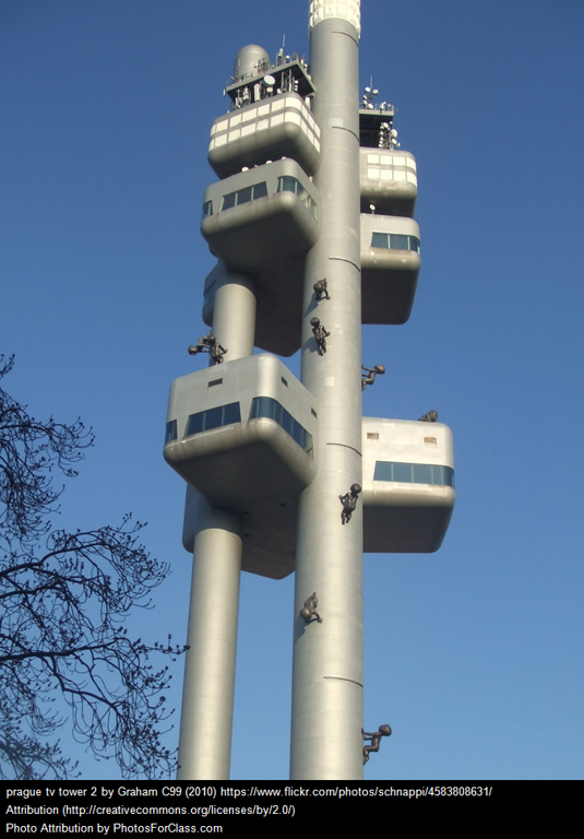 De blikvanger op de Zizkov Televisietoren zijn de reuzenbaby's die al sinds 2000 omhoog schijnen te klimmen. In dat jaar was Praag de culturele hoofdstad van Europa en Kreeg David Cerny de opdracht om een tijdelijk kunstwerk te maken. De baby's waren zo'n succes dat ze nog steeds de toren sieren.